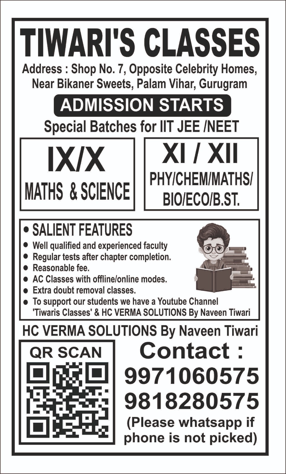 From Classes IX to XII board preparation to focused IIT-JEE and NEET coaching, we help students learn through experiments, guided practice, and concept-first teaching.